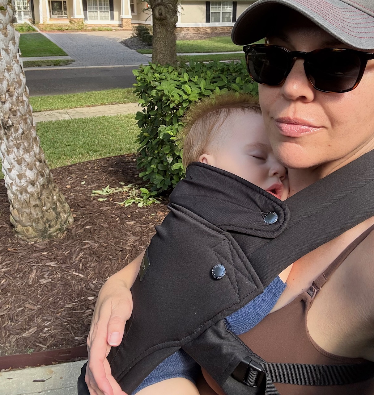 Problem #3: My aching back! This carrier offers better support and comfort. Period. When using the carrier in the traditional fashion, you basically zip and button the structured part onto the hip ledge, so the baby is more secure, and my back and hips don’t bear as much of his weight. Or, use just the hip ledge. Either way, there’s more support for an active baby careening into toddlerhood waaay too fast. Sniff.